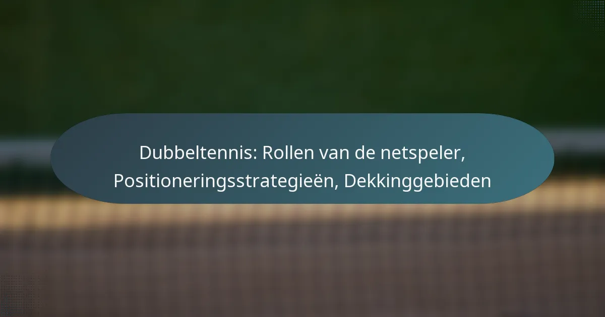 Netspelers in het dubbelspel tennis dekken voornamelijk het gebied nabij het net, met de focus op het onderscheppen van volleys en zich positioneren om te reageren op de slagen van hun tegenstanders. Effectieve dekking vereist begrip van veldzones, anticiperen op slagen en coördineren met een partner om gaten te minimaliseren.